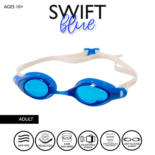 Maru Swift Swim Goggles, Anti-Fog, UV Protection, Blue and White