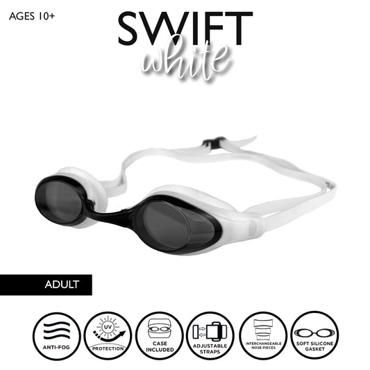 Maru Swift Swim Goggles, Anti-Fog, UV Protection, White and Black