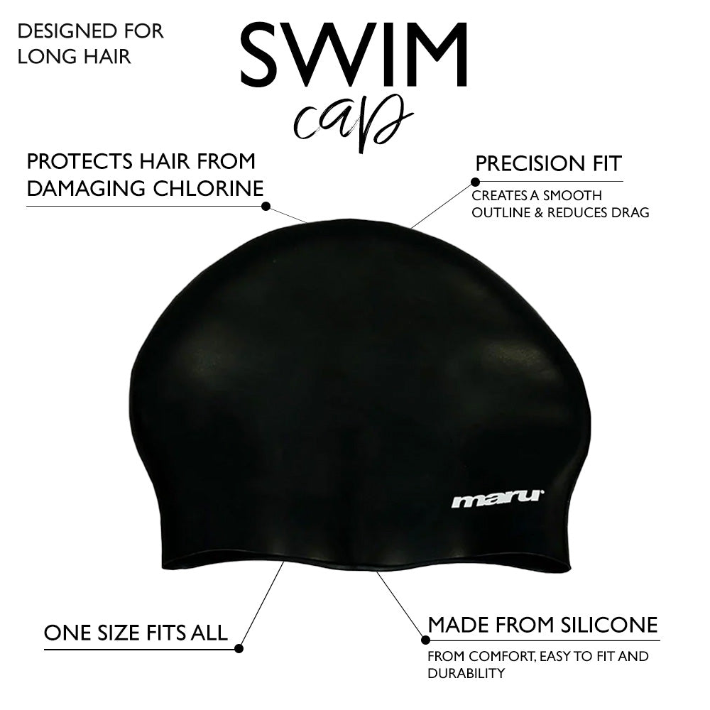 The Maru Long Hair Swim Hat is the perfect addition to your swim bag if you have longer hair. Made from 100% high-grade silicone for durability and comfort. The Maru long-hair swim cap is specifically designed to accommodate swimmers with longer hair, ensuring a lightweight, comfortable, and secure fit. Ideal for protecting your hair against the effects of chlorine whilst keeping you streamlined in the pool.y to fit, this durable silicone cap is perfect to brighten the pool during regular sessions.