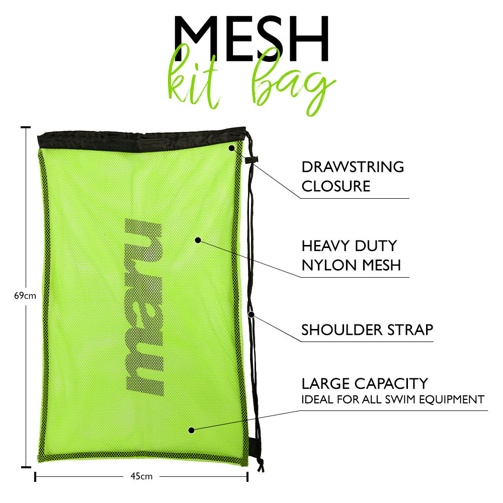 This light weight, heavy duty Mesh Bag is the ideal way to carry your swim equipment. Made from nylon mesh, this bag is perfect for transporting wet swimsuits and training gear or storing it during training. The drawstring opening allows for quick and easy access, while the eye-catching colours help it stand out from the crowd.