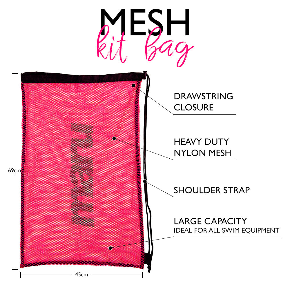 This light weight, heavy duty Mesh Bag is the ideal way to carry your swim equipment. Made from nylon mesh, this bag is perfect for transporting wet swimsuits and training gear or storing it during training. The drawstring opening allows for quick and easy access, while the eye-catching colours help it stand out from the crowd.