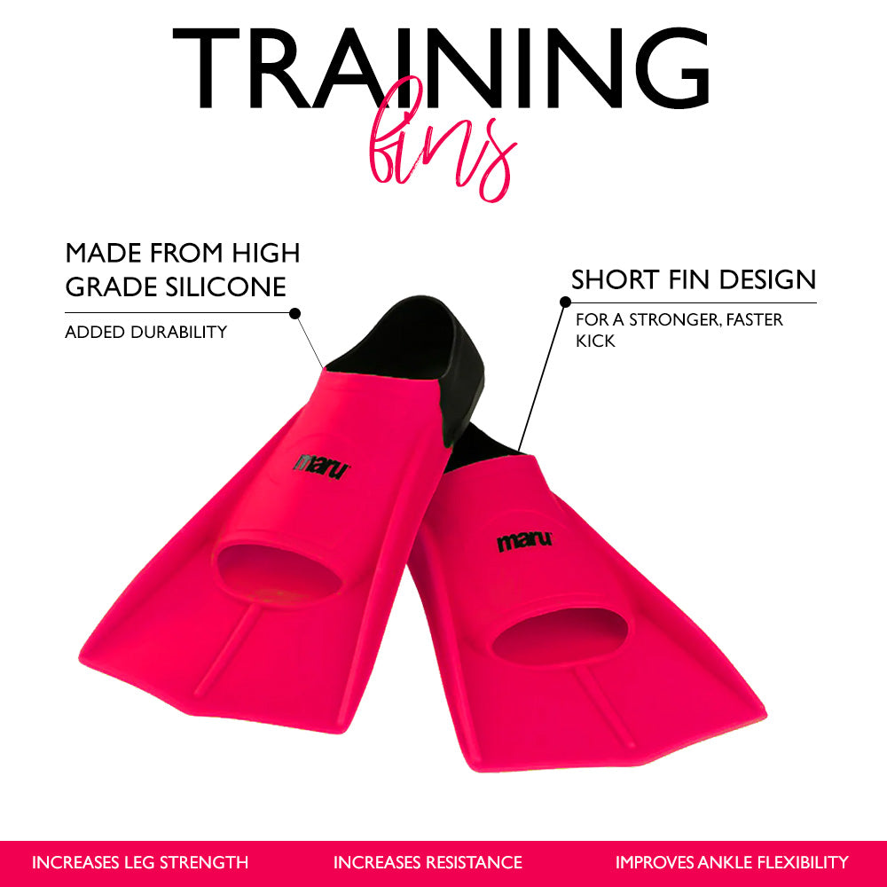 The short fin design of these Maru Training Fins has been developed to provide resistance and propulsion. Manufactured from high quality silicone the Training Fins help to improve leg strength and foot flexibility, while the rubber foot ensures the fins are secure during use. Available in three colour options, these are a great addition to your kit bag.